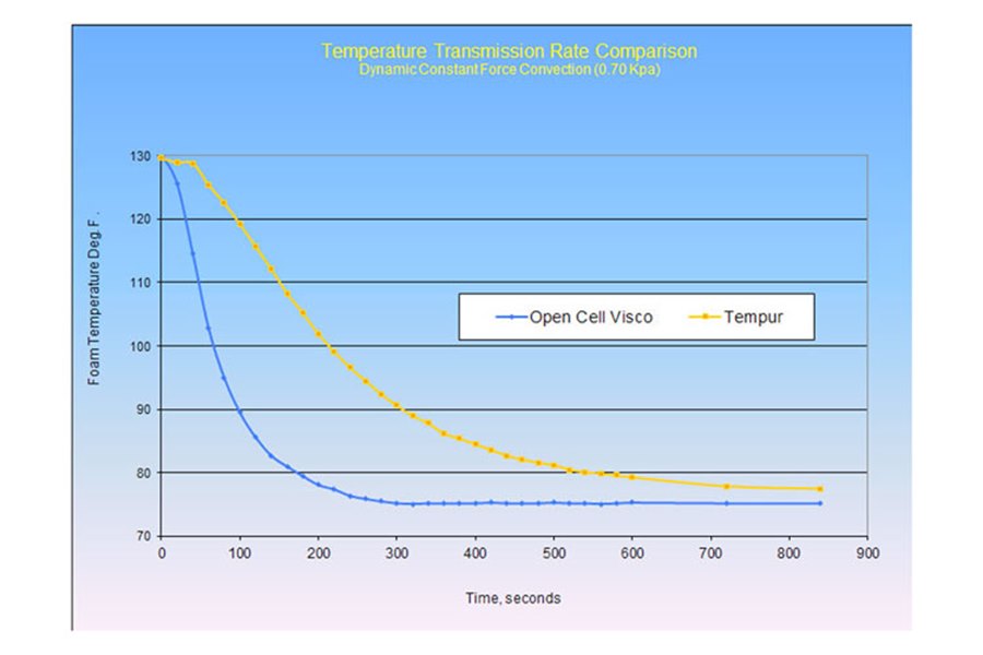 Integration of gel into viscoelastic foam results in a widening of the glass transition temperature range of conventional memory foam. This allows Temperature & Pressure Additives to provide greater pressure relief and comfort across a wide range of temperatures.
